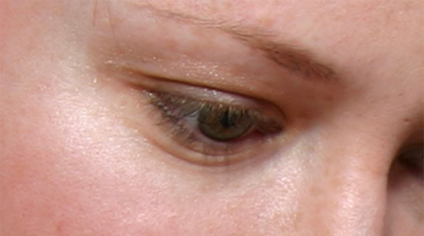 Du ser det tydelig på detaljer som for eksempel øyevipper. Hvis ikke disse er skarpe i originalen, så vil det heller ikke hjelpe å skjerpe bildet i fotoprogrammet.